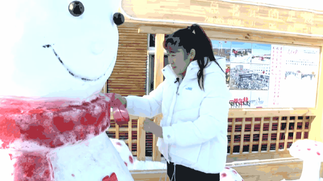中午,民宿經(jīng)營者史瑞娟趁著客人們休息,給雪人上色。今年冬天,史瑞娟在家門口堆了兩個大雪人,還把小院重新布置了一番。效果挺明顯,幾乎天天滿房。