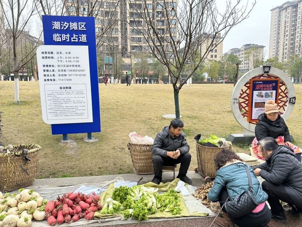 去年4月以來(lái),南川區(qū)探索在小區(qū)周邊等區(qū)域設(shè)立“潮汐攤區(qū)”,目前已設(shè)置攤區(qū)31處、攤位2100余個(gè),引導(dǎo)瓜果農(nóng)、流動(dòng)菜農(nóng)、經(jīng)營(yíng)攤販免費(fèi)入位規(guī)范經(jīng)營(yíng),實(shí)行“攤位+攤主自治”模式,早中晚定時(shí)、規(guī)范定點(diǎn)、統(tǒng)一管理?!斑@讓居民在家門口就能吃上新鮮瓜果蔬菜,也有助于規(guī)范流動(dòng)攤販管理?!蹦洗▍^(qū)城市管理局局長(zhǎng)姚濤說(shuō)。