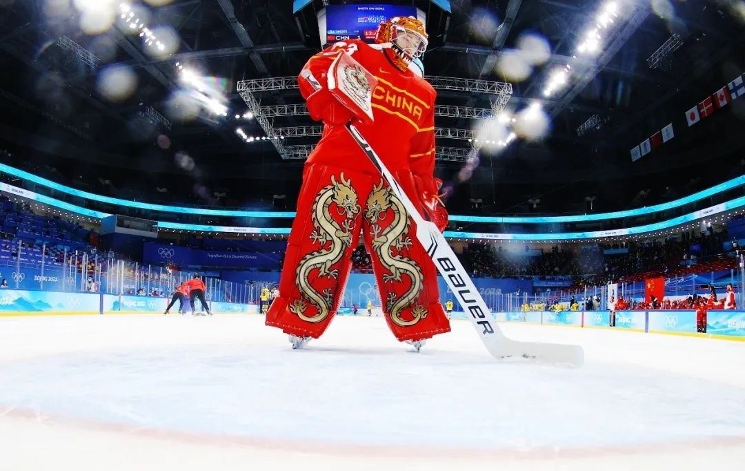 △北京冬奧會上,女子冰球門將周嘉鷹穿著中國龍護具。