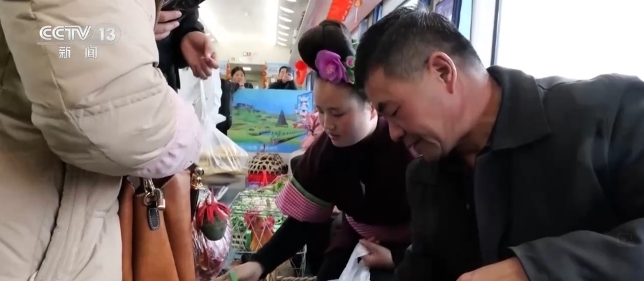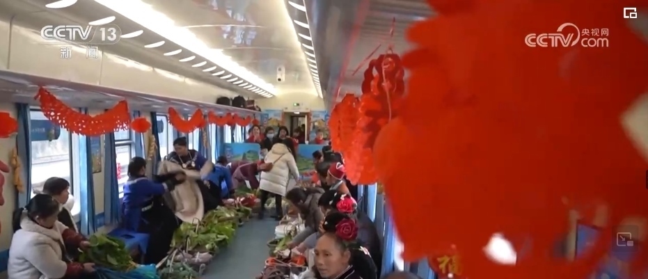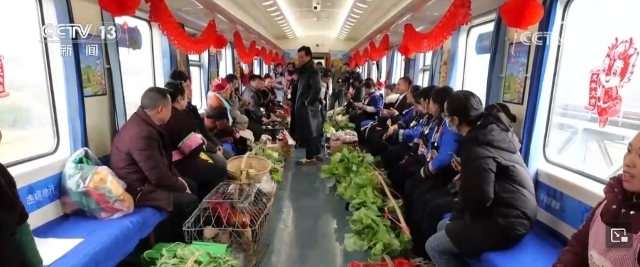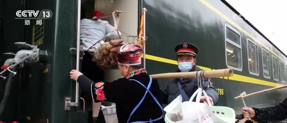 這趟“慢火車”,是鄉(xiāng)親們走親訪友的“幸??燔嚒保前汛笊嚼锏霓r(nóng)特產(chǎn)品送到山外售賣的“致富快車”。新春臨近,列車上的農(nóng)特產(chǎn)品車廂變得熱鬧起來,村民們將自家的年貨拿上車售賣,車廂里喜氣洋洋。