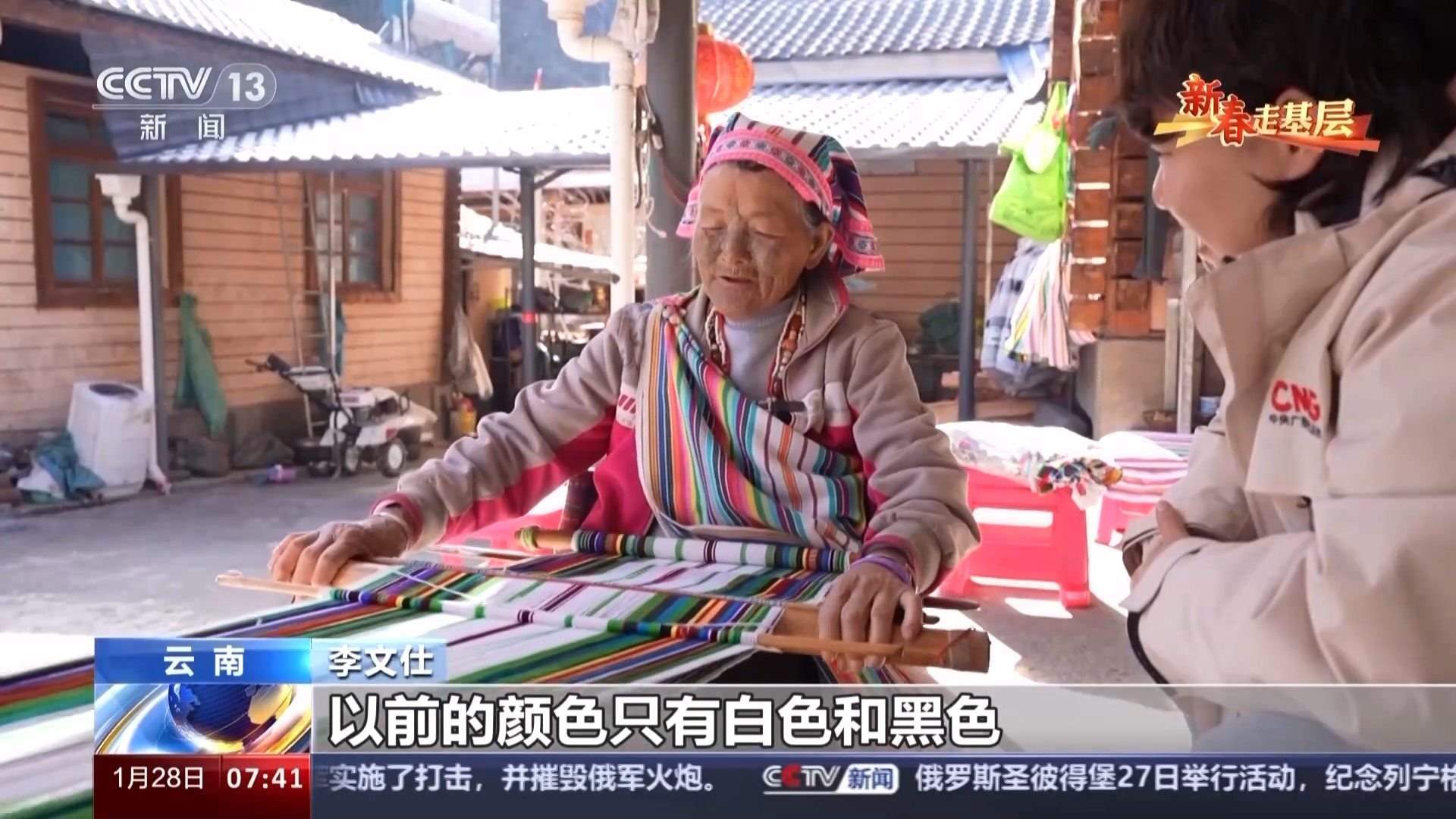 李文仕:以前的顏色只有白色和黑色,現(xiàn)在的顏色是七彩的,有很多種。心里真的很高興看到獨龍?zhí)嚎梢再u到各個地方??上У氖俏覀兡昙o大了,眼睛不好了,沒法織出更好的毯子了,但是我們希望年輕人可以好好發(fā)展,承擔起傳承的擔子。