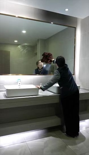 王柳云的保潔面積很大,整個(gè)寫字樓的十五層和十七層,地板、桌椅、窗戶、衛(wèi)生間,都是她的職責(zé)范圍?!昂芏嗳艘婚_完會,杯子、椅子、桌子要清理,還有窗子全部要擦干凈”,她形容自己的工作量“三四個(gè)人都干不完”,但她看中了這份工作留給她的一隅,隨便找個(gè)角落就可以寫字畫畫。