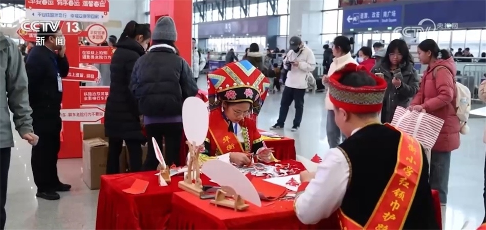 在哈爾濱、西安、上海、廣州各地的火車站,送“?!?、快閃、簽名打卡、文藝表演、民俗文化展示等豐富多彩的活動讓人們帶上一份好心情,踏上溫馨的團圓之旅。