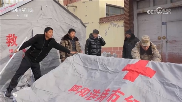 甘肅省臨夏州積石山縣石塬鎮(zhèn)振興社區(qū)副主任孔德義:“他發(fā)揮的作用特別大,因?yàn)樗吘故遣筷?duì)出身,身體素質(zhì)好,搭帳篷這一塊特別強(qiáng)。有他在的話,5分鐘就能完成一個,效率特別高。還有像如何規(guī)避余震帶來的傷害,他先給先鋒隊(duì)講解,我們再逐個分散開給群眾講解,等同于一個專業(yè)人士帶領(lǐng)著先鋒隊(duì)去幫助更多的群眾,去服務(wù)群眾?!?/p>