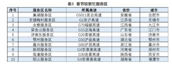 報告還公布了高速公路預(yù)計易發(fā)生擁堵緩行的路段、收費(fèi)站以及較繁忙的服務(wù)區(qū)。
