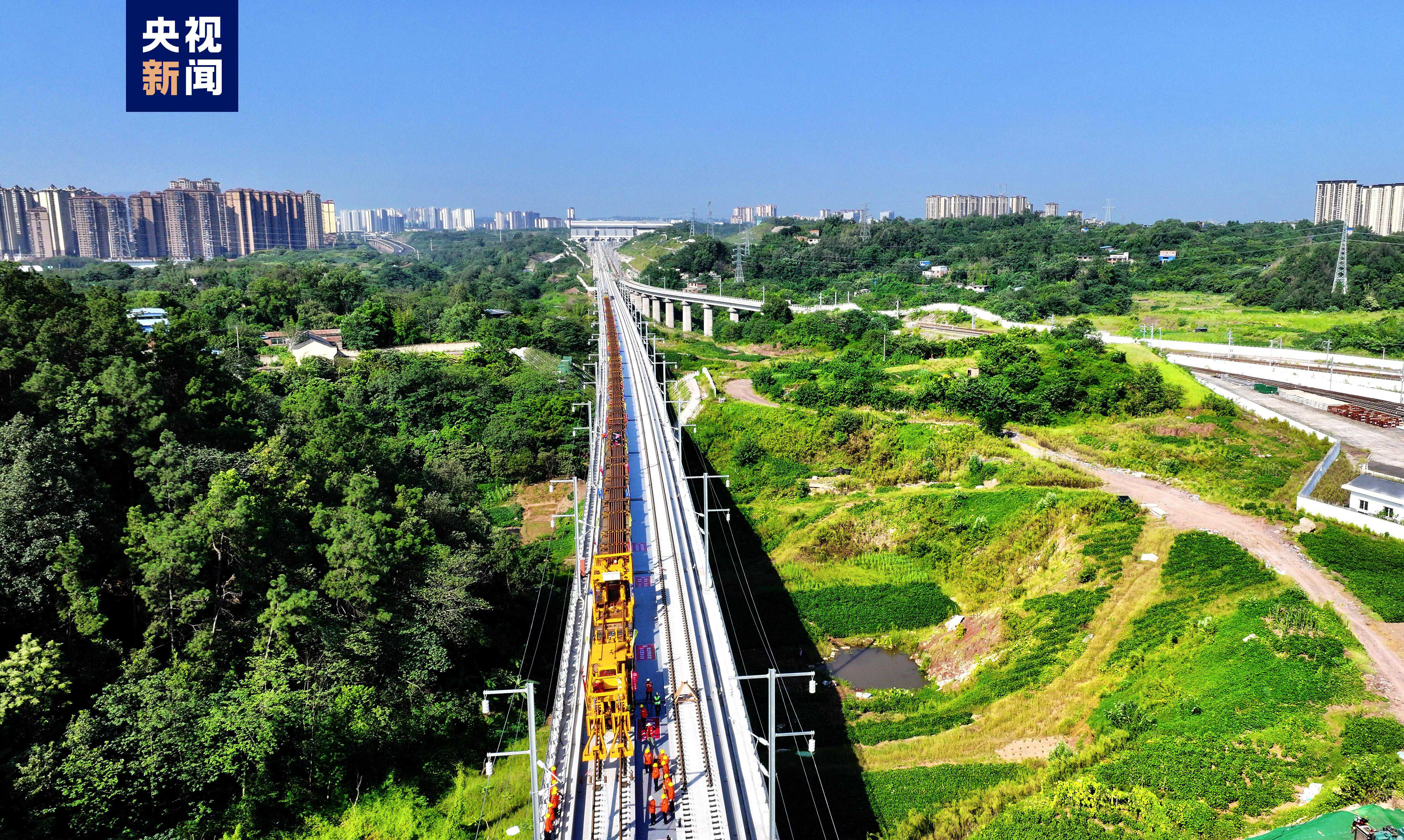 渝昆高鐵渝宜段正線全長約205公里,設(shè)計(jì)時(shí)速350公里,此次鋪軌工程量總共約391公里。鋪軌完成后將加快全線焊軌等作業(yè)。