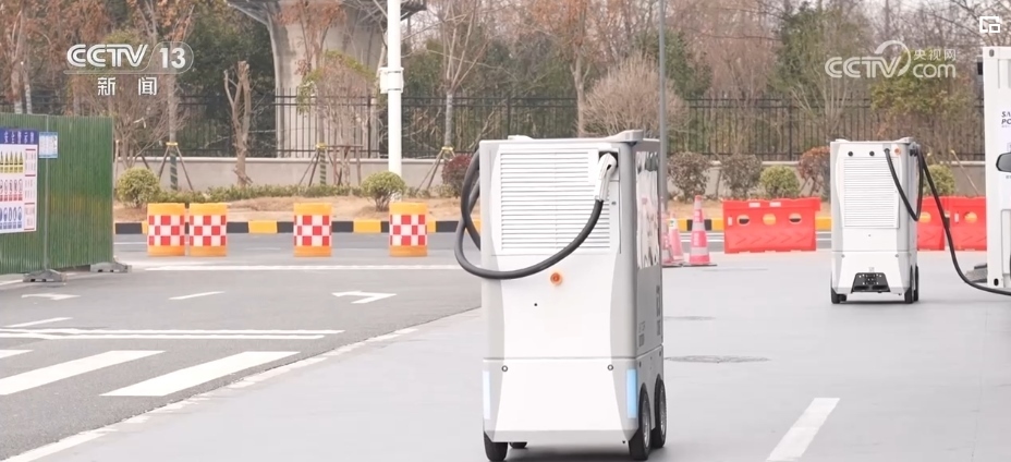 像這樣的移動(dòng)充電機(jī)器人,嘉興服務(wù)區(qū)設(shè)置了12個(gè)。為了應(yīng)對(duì)春運(yùn)期間的車(chē)流量,服務(wù)區(qū)的車(chē)位還從原來(lái)的300多個(gè)增加到了近800個(gè),充電槍從原來(lái)的18個(gè)增加到了68個(gè)。