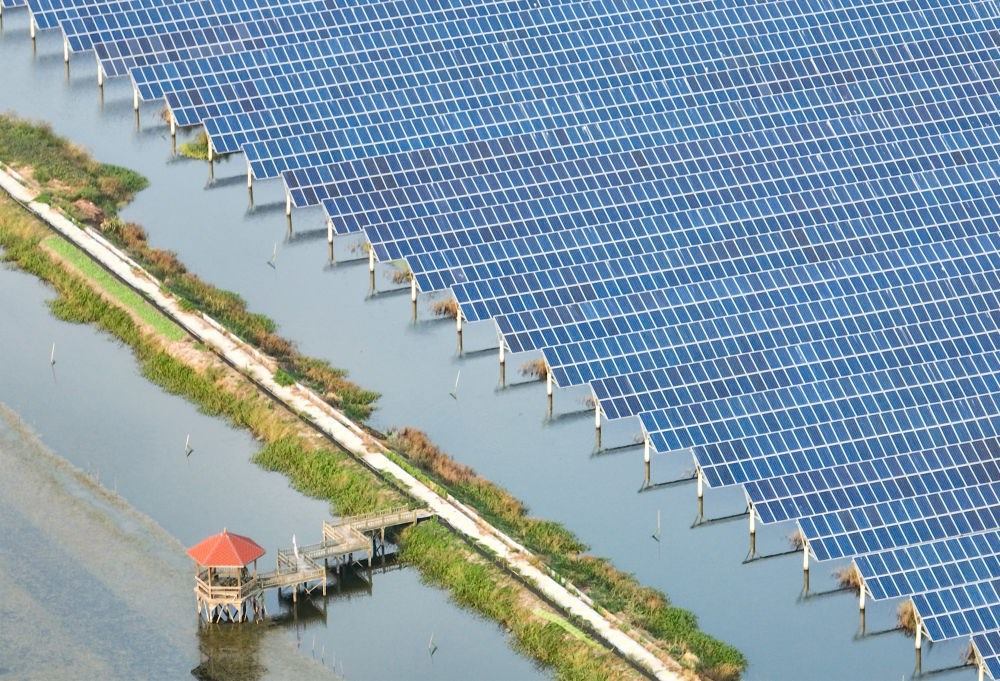 2023年10月11日拍攝的江蘇省興化市千垛鎮(zhèn)連片的光伏發(fā)電板(無人機照片)。新華社發(fā)(周社根 攝)