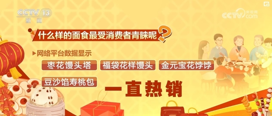 什么樣的面食最受消費(fèi)者青睞?網(wǎng)絡(luò)平臺(tái)數(shù)據(jù)顯示,寓意著步步登高的棗花饅頭塔、福袋花樣饅頭、金元寶花餑餑還有豆沙餡壽桃包一直熱銷(xiāo)。