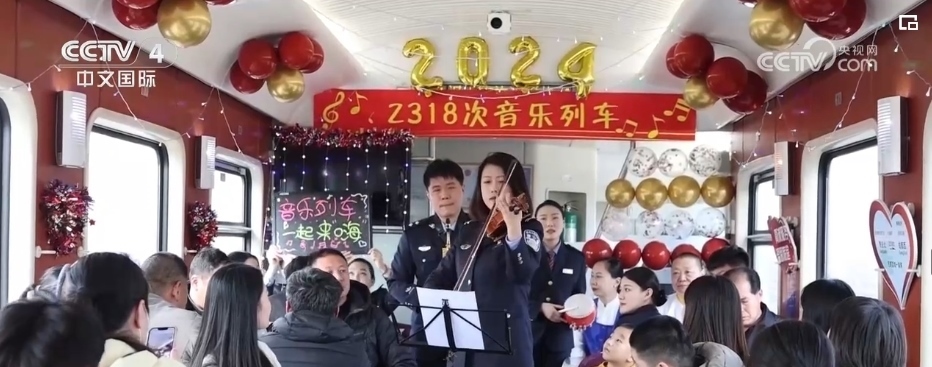 隨著春節(jié)臨近,在外務(wù)工的游子們紛紛踏上了回家的旅途。在青島北開(kāi)往成都西Z318次列車上,悅耳歡快旋律響起,列車工作人員邀請(qǐng)3位學(xué)生旅客,為大家演奏了悠揚(yáng)歡快的樂(lè)曲。
