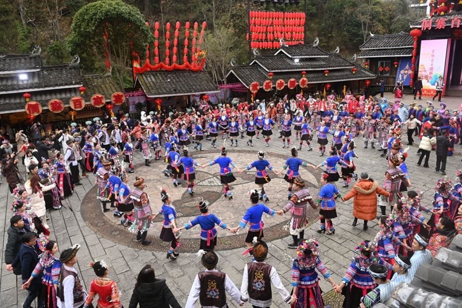 2024年2月3日,全國春節(jié)“村晚”主會場活動在廣西柳州三江侗族自治縣精彩上演,演員在“村晚”上表演節(jié)目。新華社記者 陸波岸 攝