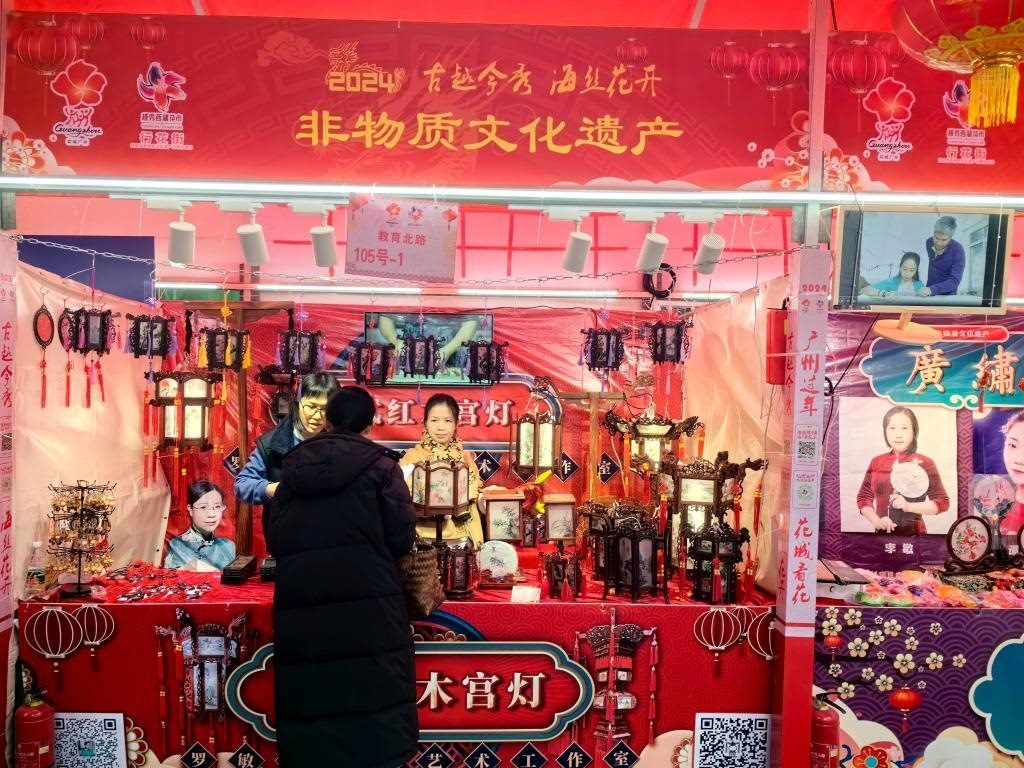 廣州欖雕、廣繡、打銅工藝、廣州醒獅、廣州餅印、粵語相聲、廣式紅木宮燈等8個非遺項目亮相花市,吸引游客駐足觀賞?,F場展出的160多個賣花檔口中,粉色的劍蘭、潔白的百合、火紅的玫瑰、金燦燦的年橘等依舊是“搶手貨”,而具有“財源滾滾來”意頭的吊鐘花也得到不少市民的青睞。