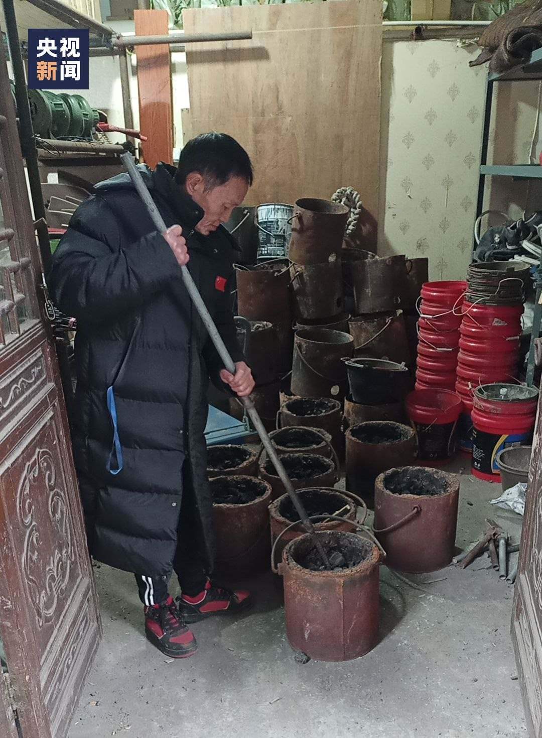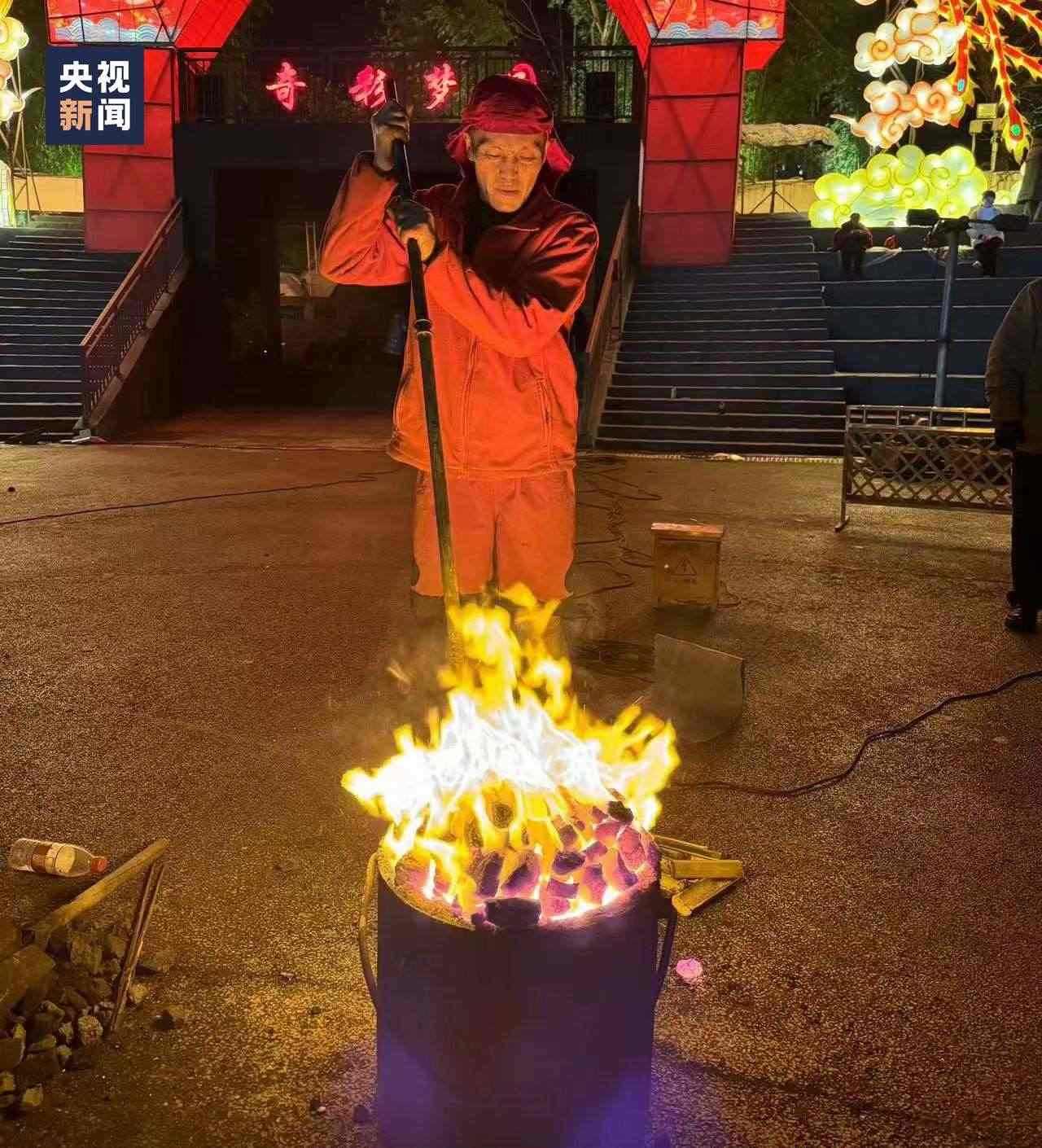 △表演前,朱華偉在燒鐵水。