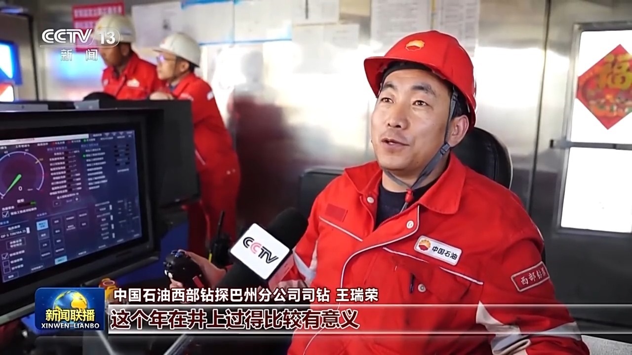 中國(guó)石油西部鉆探巴州分公司司鉆 王瑞榮:這個(gè)年在井上過得比較有意義,因?yàn)槊看蛞幻走M(jìn)尺就是一個(gè)新的亞洲紀(jì)錄在誕生。自己參與到其中,感覺挺自豪的。