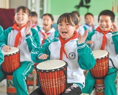 江西省樟樹市義成鎮(zhèn)中心小學學生在練習樂器演奏。目前,我國基礎(chǔ)教育普及水平總體達到世界中上行列。周 亮攝(影像中國)
