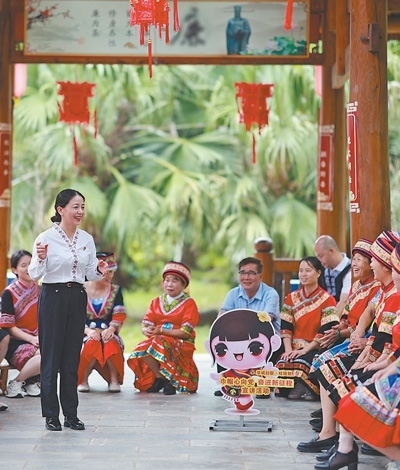 廣西壯族自治區(qū)桂林市恭城瑤族自治縣,黨員在“桂姐姐”課堂上進行宣講。近年來,當?shù)匾劳行聲r代文明實踐中心,組織“桂姐姐”宣講隊,傳播黨建、法律和婦女兒童權(quán)益保障等知識。各地新時代文明實踐中心成為精神文明建設(shè)的重要陣地,在加強思想政治引領(lǐng)、培育社會文明風尚等方面發(fā)揮著重要作用。劉教清攝(人民視覺)