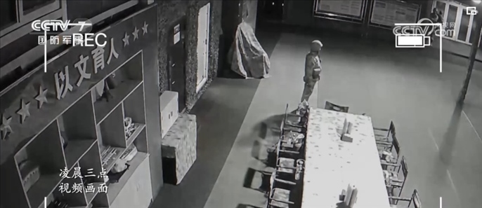 放置在哨樓的攝像機(jī),在凌晨兩點多的時候記錄了新兵們第一次執(zhí)勤時的狀態(tài)。