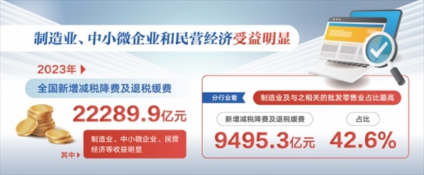 超2.2萬億元——這是2023年全國新增減稅降費及退稅緩費的總規(guī)模,其中超七成“落”于民營經(jīng)濟,稅費紅利精準“落袋”,助企減負增活力。