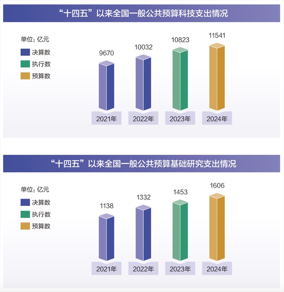 堅持把科技作為財政支出重點領(lǐng)域。2021年至2023年,累計安排全國財政科技支出3萬億元。今年,全國一般公共預(yù)算科技支出及基礎(chǔ)研究支出規(guī)模將進一步增長。
