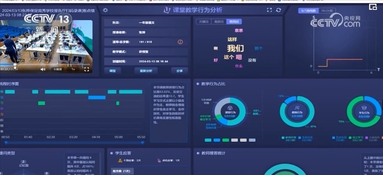 在河北保定競秀學校,一套新引進的智慧教學研一體化系統(tǒng)正在推行。教室里,兩臺智能攝像機對課堂情況進行視頻采集,包括高頻詞、師生互動、講課語速等元素,通過AI技術生成課堂大數據分析報告,對于改進教學方法起到意想不到的效果。
