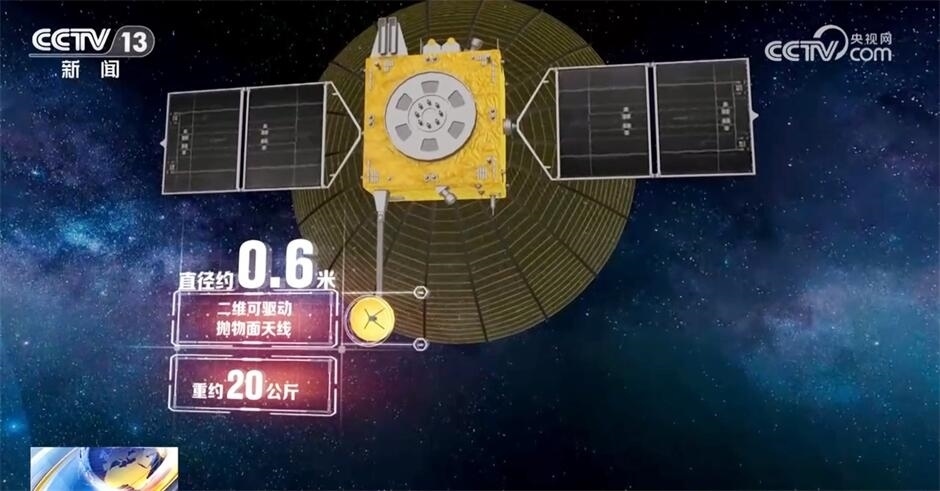 而在鵲橋二號中繼星上還有一個“小傘”,叫二維可驅動拋物面天線。它的直徑和重量都很小,直徑大約只有0.6米、重約20公斤。在太空中,通過兩軸驅動機構,保證每時每刻都能指向地面數(shù)據(jù)接收站。