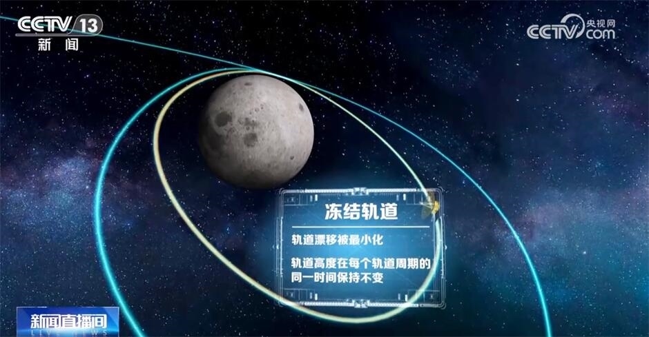 剛才提到了環(huán)月大橢圓凍結軌道,那什么是凍結軌道?所謂凍結軌道是一種特殊的航天器軌道,在這類軌道上運行的航天器,通過恰當?shù)卦O計軌道參數(shù),軌道漂移可以被最小化。通常位于這種軌道上的衛(wèi)星在很長一段時間內,其軌道高度在每個軌道周期的同一時間是保持不變的。因此,一旦進入這個軌道,鵲橋二號將最大程度地節(jié)省燃料,能夠保證它的軌道的遠月點一直位于月球南極區(qū)域上方,從而確保了它在為期8年的設計壽命中,長時間、穩(wěn)定地支持后續(xù)南極地區(qū)的探月任務。