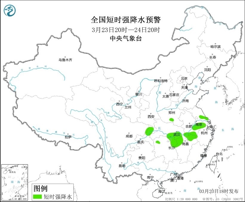 中央氣象臺3月23日18時繼續(xù)發(fā)布強(qiáng)對流天氣藍(lán)色預(yù)警
