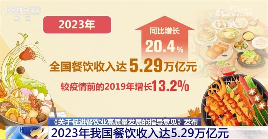 2023年我國(guó)餐飲收入達(dá)5.29萬(wàn)億元,同比增長(zhǎng)20.4%。那么,國(guó)家為什么在此時(shí)出臺(tái)促進(jìn)餐飲業(yè)高質(zhì)量發(fā)展的指導(dǎo)意見?餐飲業(yè)如何實(shí)現(xiàn)高質(zhì)量發(fā)展?目前面臨哪些問題?來(lái)看專家的解讀。?