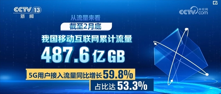 從流量來看,截至2月底,我國移動互聯(lián)網(wǎng)累計流量達487.6億GB,其中,5G用戶接入流量同比增長59.8%,占比達53.3%。可以看出,5G已成為了流量使用增長的主動力。