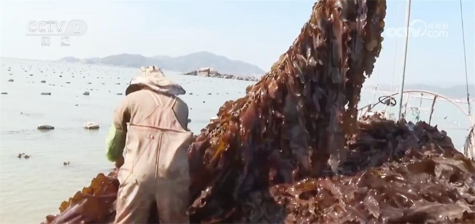眼下,福建福州連江縣10.3萬畝優(yōu)質(zhì)海帶進入采收期,不少海帶養(yǎng)殖戶搶抓晴好天氣收割海帶,海面上一片熱鬧、繁忙景象。?