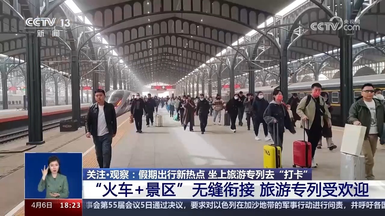 央視網(wǎng)消息:清明春花放,踏青好時節(jié)。坐著火車去旅行,縱跨千山,橫飛萬水,用速度與激情串聯(lián)美景。今年清明假期第一天也就是4月4日,全國鐵路發(fā)送旅客1853.6萬人次,創(chuàng)今年以來單日旅客發(fā)送量新高。以網(wǎng)紅城市、網(wǎng)紅景區(qū)為目的地的客流增幅明顯,各地增開的臨客列車也瞄準了游客“打卡地”。坐上旅游專列去旅行,可以給移步換景的美好出游心愿帶來多少種可能呢?進入今天的關注觀察。