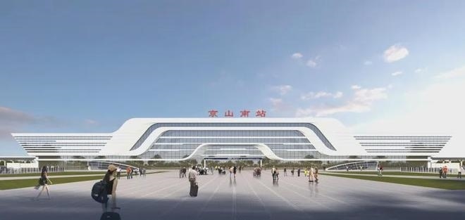 站房設(shè)計(jì)理念以“生態(tài)京山,觀鳥(niǎo)天堂”為主題,立面形成三層流暢的曲線造型,通過(guò)層層的推進(jìn),形成飛鳥(niǎo)展開(kāi)的羽翼,打造舒展柔軟的建筑形象。設(shè)計(jì)提取京山“京”字筆畫(huà),運(yùn)用抽象化建筑語(yǔ)言描摹“京”字之形,形成流暢的建筑形體。目前,車(chē)站樁基施工完畢,基礎(chǔ)承臺(tái)建設(shè)完成三分之二。