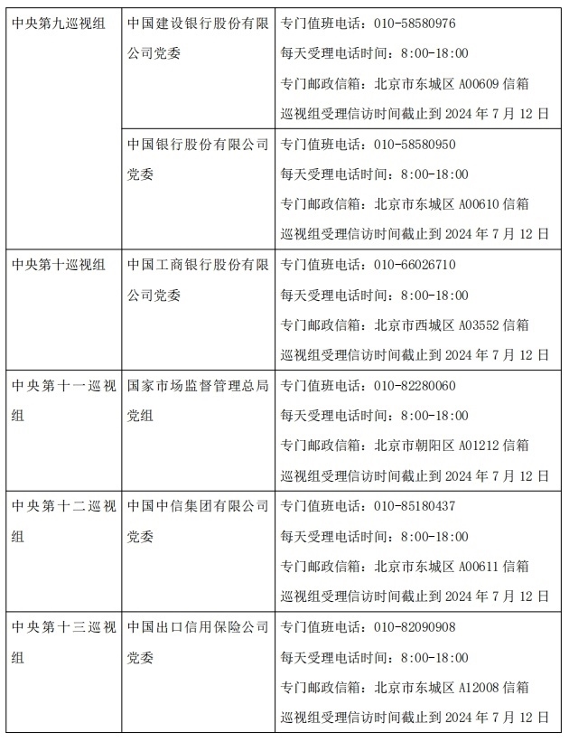 經(jīng)黨中央批準(zhǔn),二十屆中央第三輪巡視將對(duì)國(guó)家發(fā)展和改革委員會(huì)、財(cái)政部、自然資源部、住房和城鄉(xiāng)建設(shè)部、農(nóng)業(yè)農(nóng)村部、商務(wù)部、中國(guó)人民銀行、審計(jì)署、海關(guān)總署、國(guó)家稅務(wù)總局、國(guó)家市場(chǎng)監(jiān)督管理總局、國(guó)家金融監(jiān)督管理總局、中國(guó)證券監(jiān)督管理委員會(huì)、國(guó)家統(tǒng)計(jì)局、國(guó)家知識(shí)產(chǎn)權(quán)局、國(guó)家糧食和物資儲(chǔ)備局、國(guó)家能源局、國(guó)家林業(yè)和草原局、國(guó)家外匯管理局、中華全國(guó)供銷(xiāo)合作總社、全國(guó)社會(huì)保障基金理事會(huì)、中國(guó)地質(zhì)調(diào)查局、上海證券交易所、深圳證券交易所、中國(guó)進(jìn)出口銀行、中國(guó)工商銀行股份有限公司、中國(guó)農(nóng)業(yè)銀行股份有限公司、中國(guó)銀行股份有限公司、中國(guó)建設(shè)銀行股份有限公司、交通銀行股份有限公司、中國(guó)中信集團(tuán)有限公司、中國(guó)人壽保險(xiǎn)(集團(tuán))公司、中國(guó)太平保險(xiǎn)集團(tuán)有限責(zé)任公司、中國(guó)出口信用保險(xiǎn)公司等34家單位黨委(黨組)開(kāi)展常規(guī)巡視。