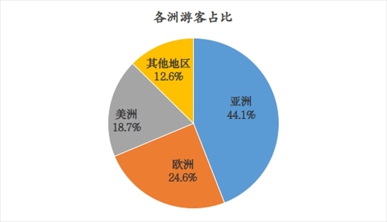 一、近程市場恢復良好。港澳臺地區(qū)游客恢復速度較快,合計為9.5萬人次,恢復到2019年的80.1%。游客占比方面,亞洲游客(不包括港澳臺地區(qū))占比為44.1%,較2019年提升7.2個百分點,東南亞地區(qū)游客恢復情況最好,其中主要客源國為馬來西亞、泰國、新加坡。