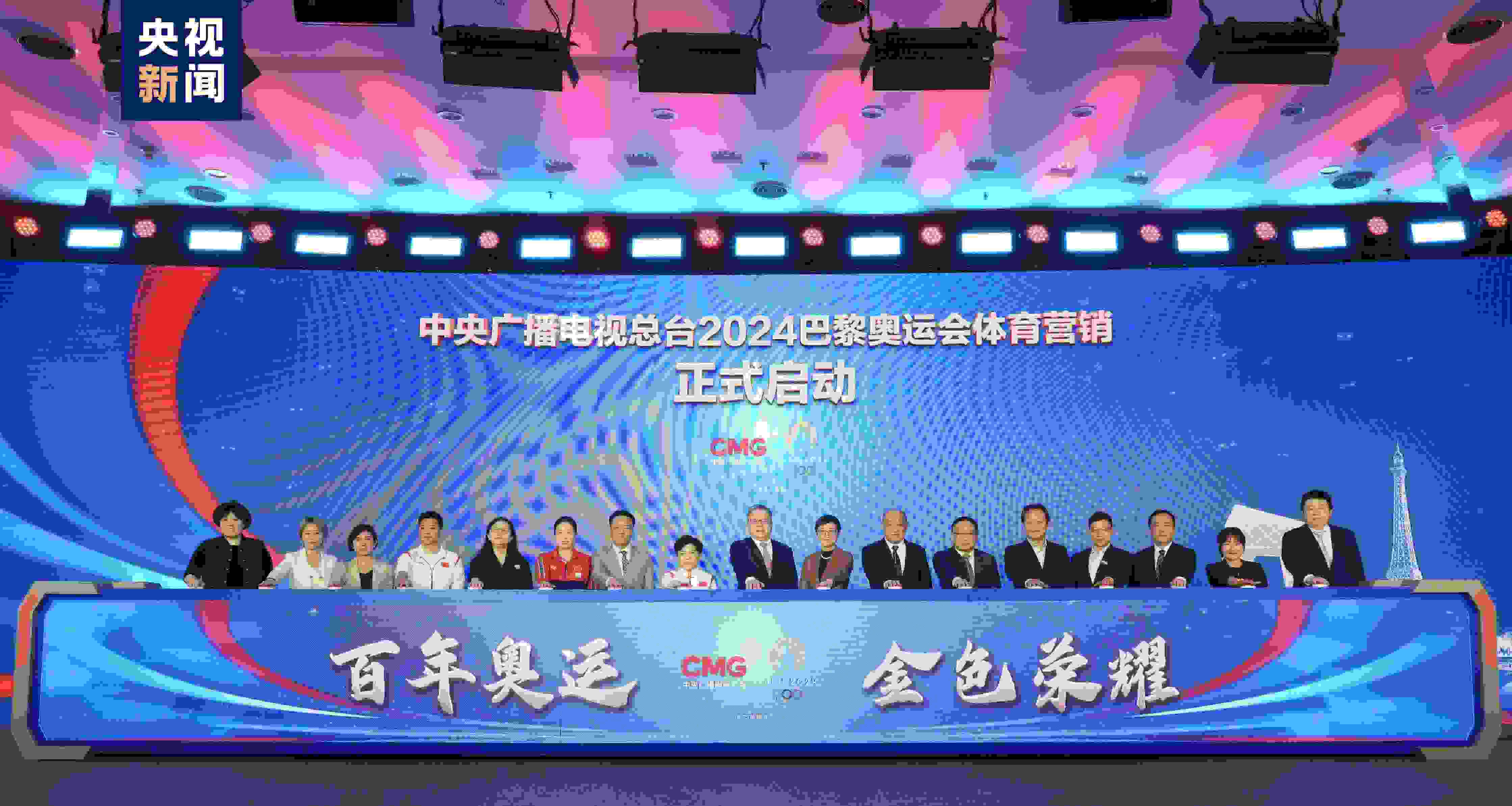 中央廣播電視總臺(tái)編務(wù)會(huì)議成員兼總經(jīng)理室總經(jīng)理彭健明出席活動(dòng),并與總臺(tái)財(cái)經(jīng)節(jié)目中心、體育青少節(jié)目中心、視聽(tīng)新媒體中心、技術(shù)局、新聞新媒體中心、文藝節(jié)目中心、總經(jīng)理室相關(guān)負(fù)責(zé)人,奧運(yùn)冠軍鄧亞萍、高崚、何沖,東鵬飲料(集團(tuán))股份有限公司、寶潔(中國(guó))有限公司、安利(中國(guó))日用品有限公司、上海百雀羚日用化學(xué)有限公司、小紅書(shū)科技有限公司、安踏(中國(guó))有限公司相關(guān)負(fù)責(zé)人等,共同啟動(dòng)總臺(tái)2024巴黎奧運(yùn)會(huì)體育營(yíng)銷(xiāo)。
