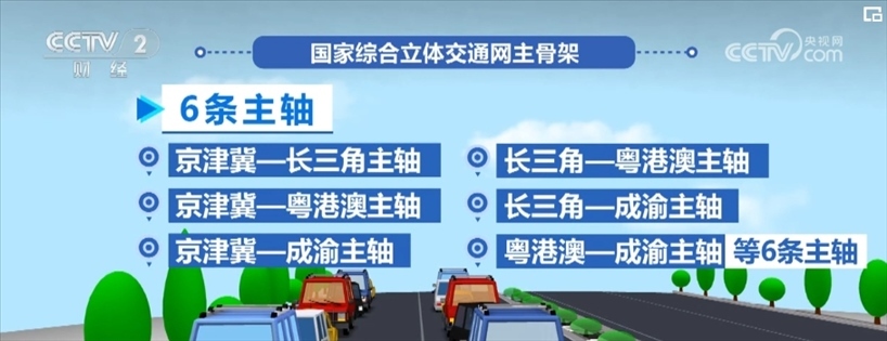 國家綜合立體交通網(wǎng)主骨架可以概括為“6軸、7廊、8通道”,即6條主軸、7條走廊、8條通道。