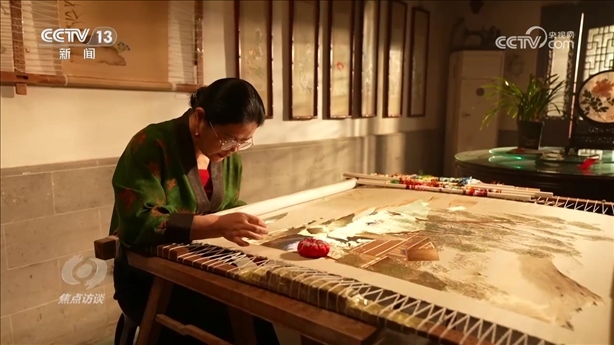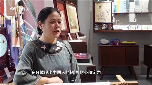 盧建英:“當(dāng)時(shí)我在繡一幅《桃花太平鳥(niǎo)圖》,習(xí)近平總書記走到了我的繃架前。他說(shuō)你好,很親切,很和藹,看得非常仔細(xì)。他說(shuō)中華文化的傳承力有多強(qiáng),通過(guò)這個(gè)蘇繡可以看出來(lái),像這樣的功夫充分體現(xiàn)出中國(guó)人的韌性、耐心和定力,這是中華民族精神的一部分,能得到總書記的認(rèn)可,真的是倍感榮耀?!?/p>