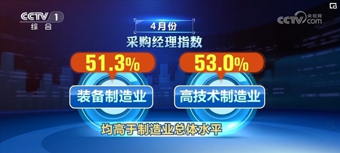 新動能繼續(xù)較快擴張。4月份,裝備制造業(yè)和高技術(shù)制造業(yè)采購經(jīng)理指數(shù)分別為51.3%和53.0%,均高于制造業(yè)總體水平。
