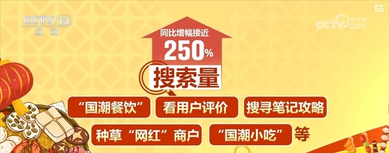 2024年以來(lái),不少用戶上平臺(tái)搜索“國(guó)潮餐飲”,看用戶評(píng)價(jià)、搜尋筆記攻略、種草“網(wǎng)紅”商戶,“國(guó)潮小吃”等搜索量同比增幅接近250%。同時(shí),平臺(tái)上“國(guó)潮”餐飲商戶數(shù)同比增幅接近500%,團(tuán)購(gòu)訂單量大漲550%。
