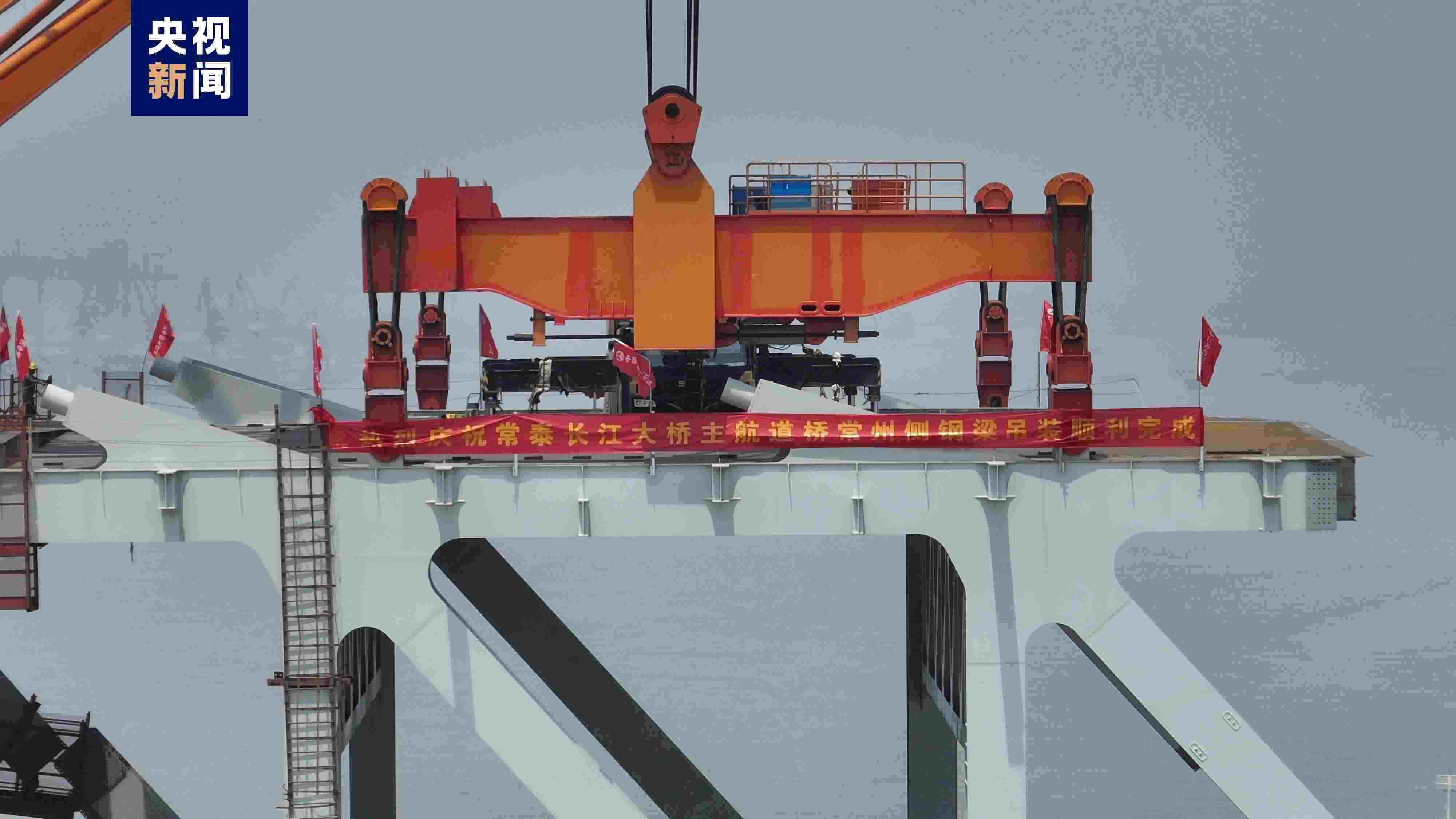 5月7日上午,常泰長(zhǎng)江大橋主航道橋常州側(cè),最后一個(gè)大節(jié)段鋼梁平穩(wěn)吊裝完成,標(biāo)志著常泰長(zhǎng)江大橋常州側(cè)主體工程全部完成,全橋預(yù)計(jì)6月合龍。