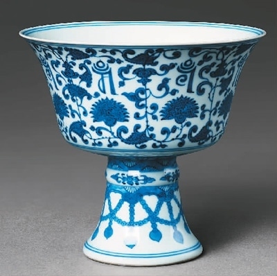 清代青花纏枝蓮?fù)需笪募y高足供碗。中國大運(yùn)河博物館供圖