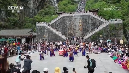 今年“五一”,湖南張家界天門山景區(qū)的大型山水實景音樂劇《天門·狐仙》以實景山水為背景,融合聲、光、電、AI技術(shù)與裸眼3D,吸引了大批韓國游客觀看。