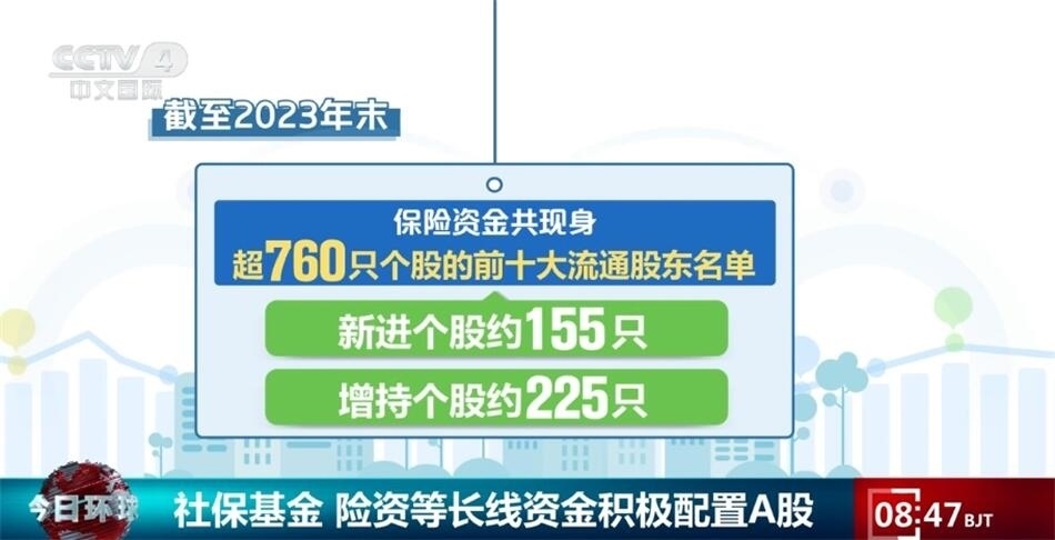 央視網(wǎng)消息:A股2023年年報日前披露結(jié)束,上市公司的前十大流通股東情況顯示,包括社?;?、保險資金、合格境外機構(gòu)投資者等在內(nèi)的長線資金入市步伐正在不斷加快,A股中長期投資力量不斷壯大。