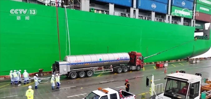 5月10日,中國(guó)船舶集團(tuán)自研的全球首套全流程船舶碳捕集系統(tǒng)所生產(chǎn)的第一罐二氧化碳產(chǎn)品正式交付。