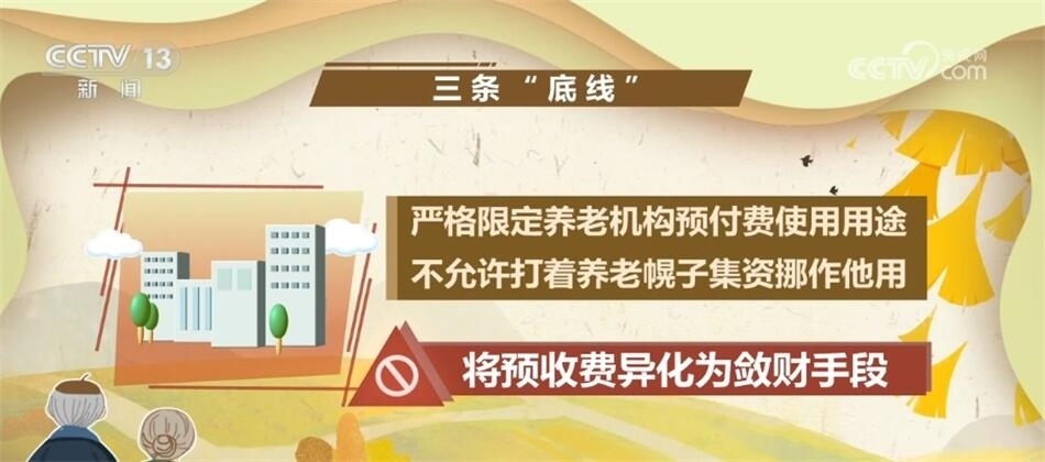 發(fā)布會(huì)上,民政部相關(guān)負(fù)責(zé)人介紹,《意見(jiàn)》還明確了三條安全“底線”:第一條是嚴(yán)禁養(yǎng)老機(jī)構(gòu)超過(guò)床位供給能力“一床多賣”;第二條是嚴(yán)格限定養(yǎng)老機(jī)構(gòu)預(yù)付費(fèi)使用用途,不允許打著養(yǎng)老幌子集資挪作他用,將預(yù)收費(fèi)異化為斂財(cái)手段;第三條是明確不得以承諾還本付息、給予其他投資回報(bào)等方式,誘導(dǎo)老年人及家屬交費(fèi),這是典型的非法集資行為。