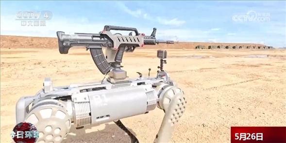 中方參演隊員陳威介紹:“我現(xiàn)在操作的是B1四足機器狗,它可以在我們的訓練當中代替我們的隊員先行進行偵察和發(fā)現(xiàn)敵人后火力打擊,是我們城市攻防作戰(zhàn)中的新成員?!?/p>