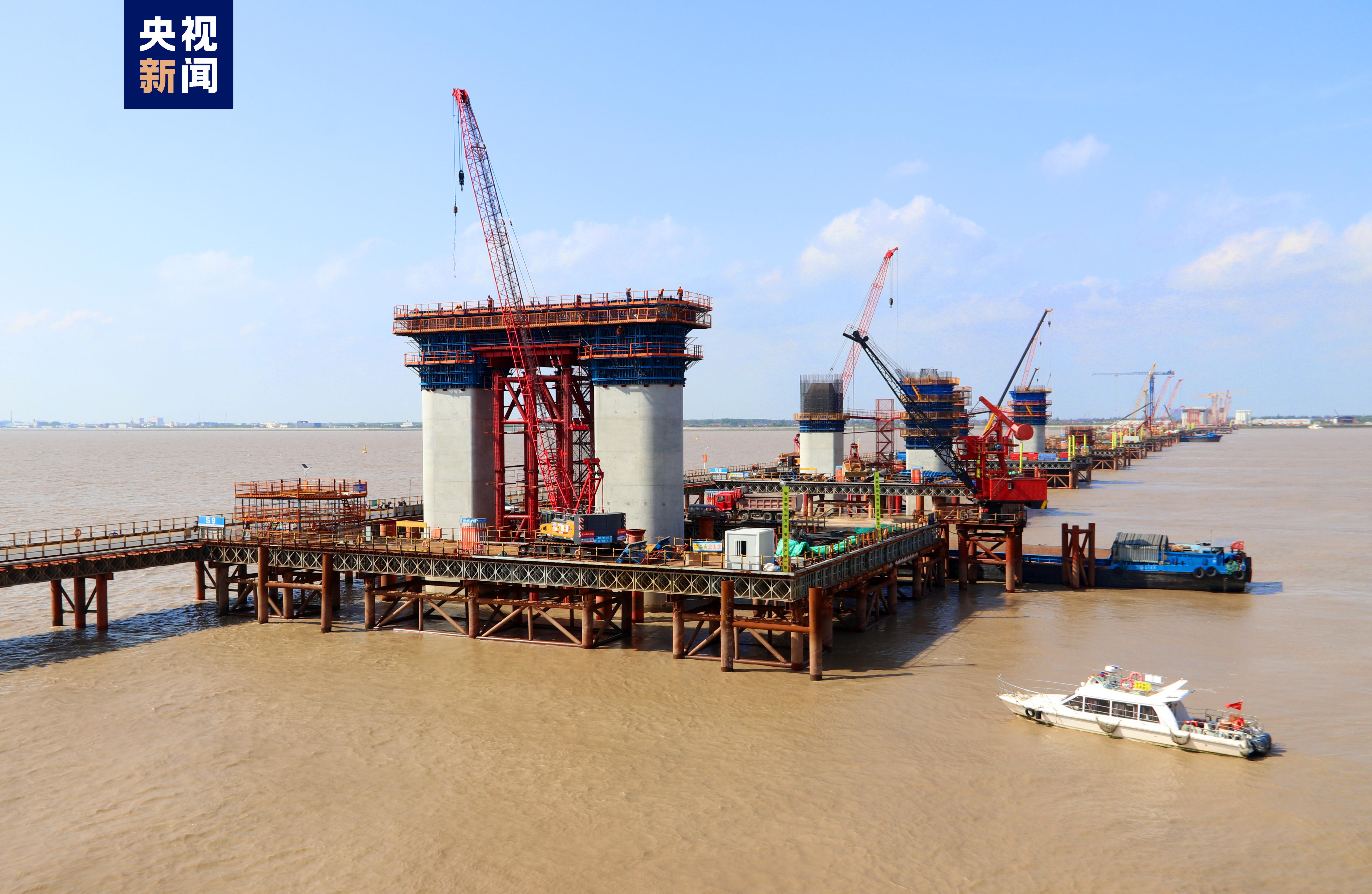 5月26日,隨著最后一車混凝土澆筑,滬渝蓉高鐵崇啟公鐵長(zhǎng)江大橋主橋S9號(hào)墩蓋梁成功澆筑,標(biāo)志著大橋水中首個(gè)門式橋墩建成。據(jù)介紹,S9號(hào)墩蓋梁橫橋向長(zhǎng)30.5米、縱橋向?qū)?.0米、高4.0米,混凝土方量652.95立方米,采用落地鋼管支架一次澆筑成型。
