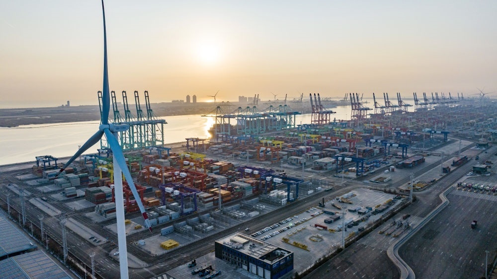 看似平常的碼頭作業(yè),背后卻另有玄機——整個過程達(dá)到了“零碳”排放。2021年底,隨著兩臺風(fēng)機葉片緩緩啟動,這座全球首個“智慧零碳”碼頭的智慧綠色能源系統(tǒng)開始并網(wǎng)發(fā)電,通過風(fēng)電、光伏發(fā)出的綠色能源,源源不斷為碼頭生產(chǎn)提供能源。