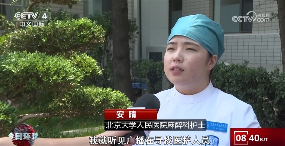 北京大學(xué)人民醫(yī)院麻醉科護(hù)士安晴稱:“進(jìn)了地鐵閘機(jī)門之后,我就聽見廣播在尋找醫(yī)護(hù)人員 ,我就趕緊從樓梯走了下去。當(dāng)時(shí)患者已經(jīng)沒有反應(yīng)了,已經(jīng)呼之不應(yīng)了,我就立馬上前查看了一下她的瞳孔,當(dāng)時(shí)瞳孔已經(jīng)散大了,然后摸了一下頸動(dòng)脈的搏動(dòng),也是消失的,我就判定她為心臟驟停,然后緊急對(duì)她進(jìn)行了胸外按壓。”