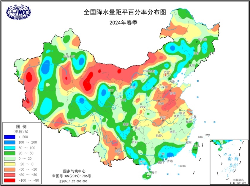 央視網(wǎng)消息:2024年春季,全國氣候總體呈現(xiàn)暖濕特征。平均氣溫為歷史同期最高,南方多站日最高氣溫達(dá)到或超過歷史極值;北方冷空氣次數(shù)偏多,氣溫波動(dòng)起伏大。全國降水量總體偏多,但空間分布不均。14次區(qū)域暴雨過程襲擊我國,較常年同期明顯偏多;南方強(qiáng)對流天氣頻發(fā),局地影響重;西南地區(qū)出現(xiàn)冬春連旱,進(jìn)入5月后緩解;4月以來,黃淮江淮地區(qū)氣象干旱露頭并發(fā)展,目前仍存在中度及以上等級氣象干旱;春季,西北太平洋及南海共生成兩個(gè)臺風(fēng),生成數(shù)量接近常年同期,無臺風(fēng)登陸我國。